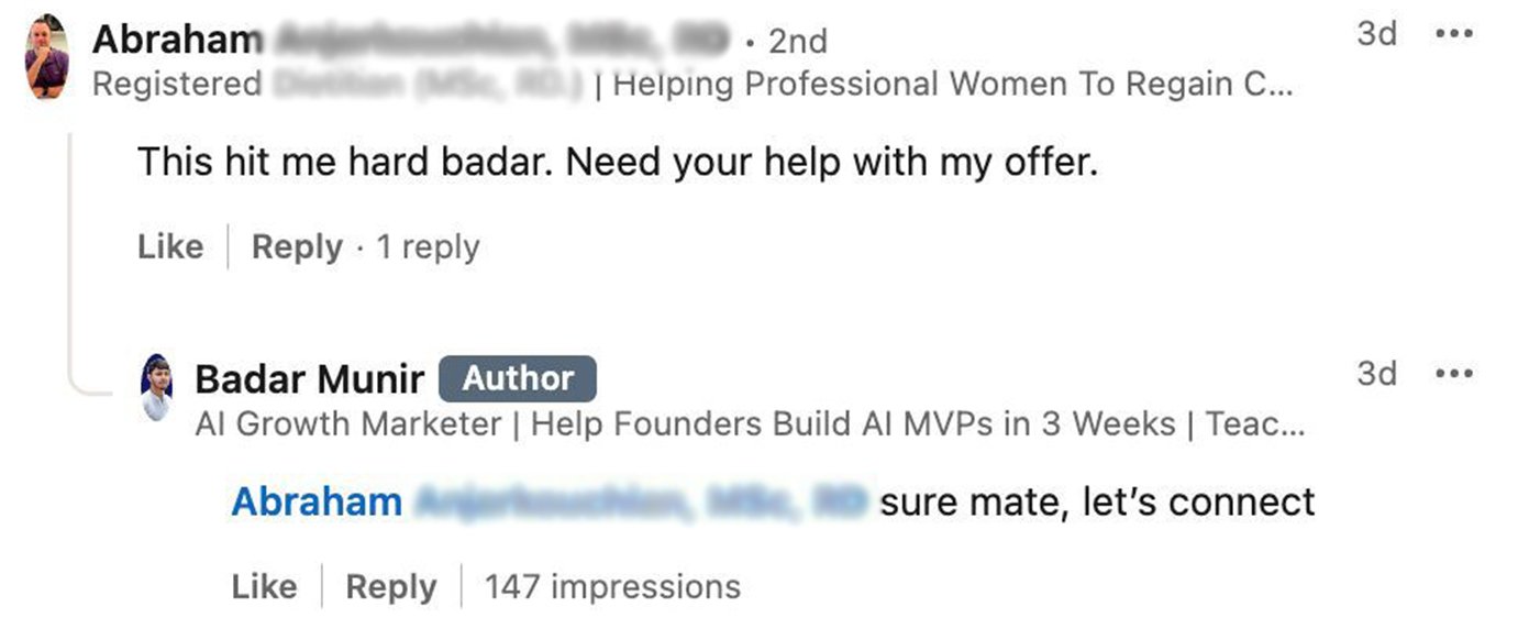 Not generic ChatGPT prompts or basic chatbots. I discovered a way to help real businesses deploy systems that help them in their operations. And because of that, they pay me monthly to keep thing running.